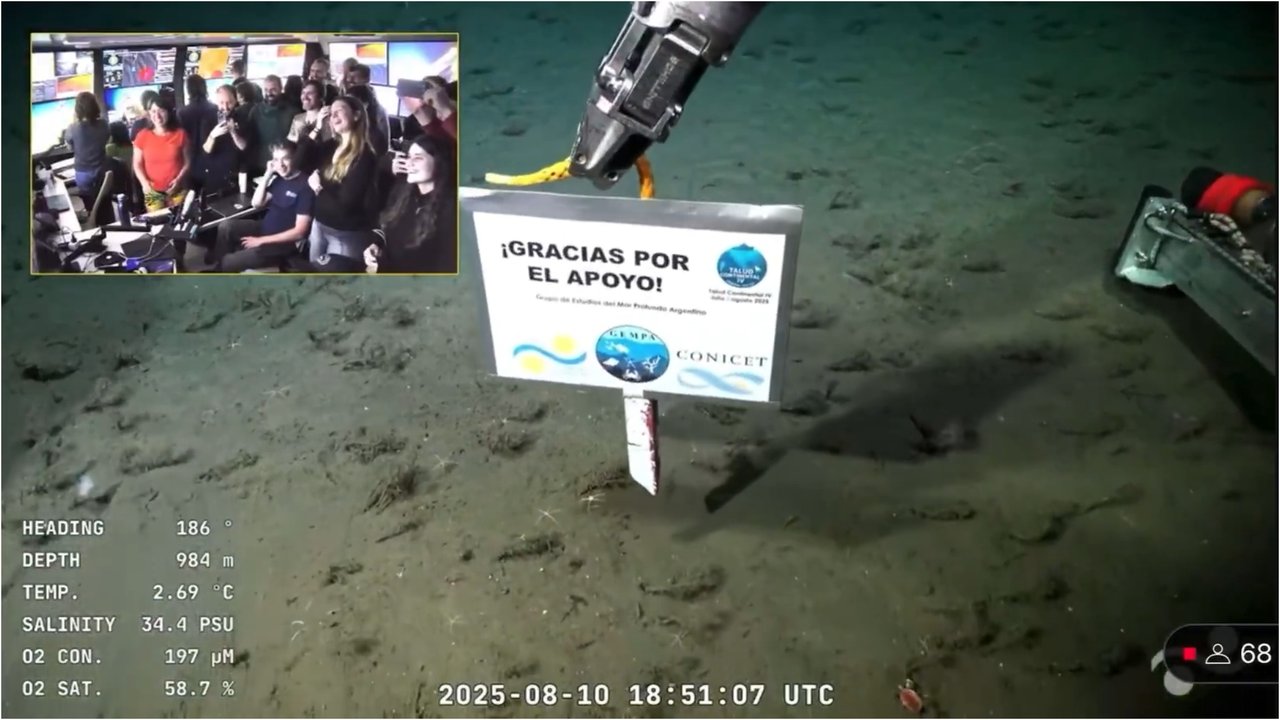 La histórica transmisión en vivo de la expedición del CONICET desde el fondo del mar argentino tuvo un cierre a pura emoción. En la última inmersión del robot submarino, los científicos desplegaron un cartel con un simple pero contundente mensaje que se viralizó en las redes: “Gracias por el apoyo”.