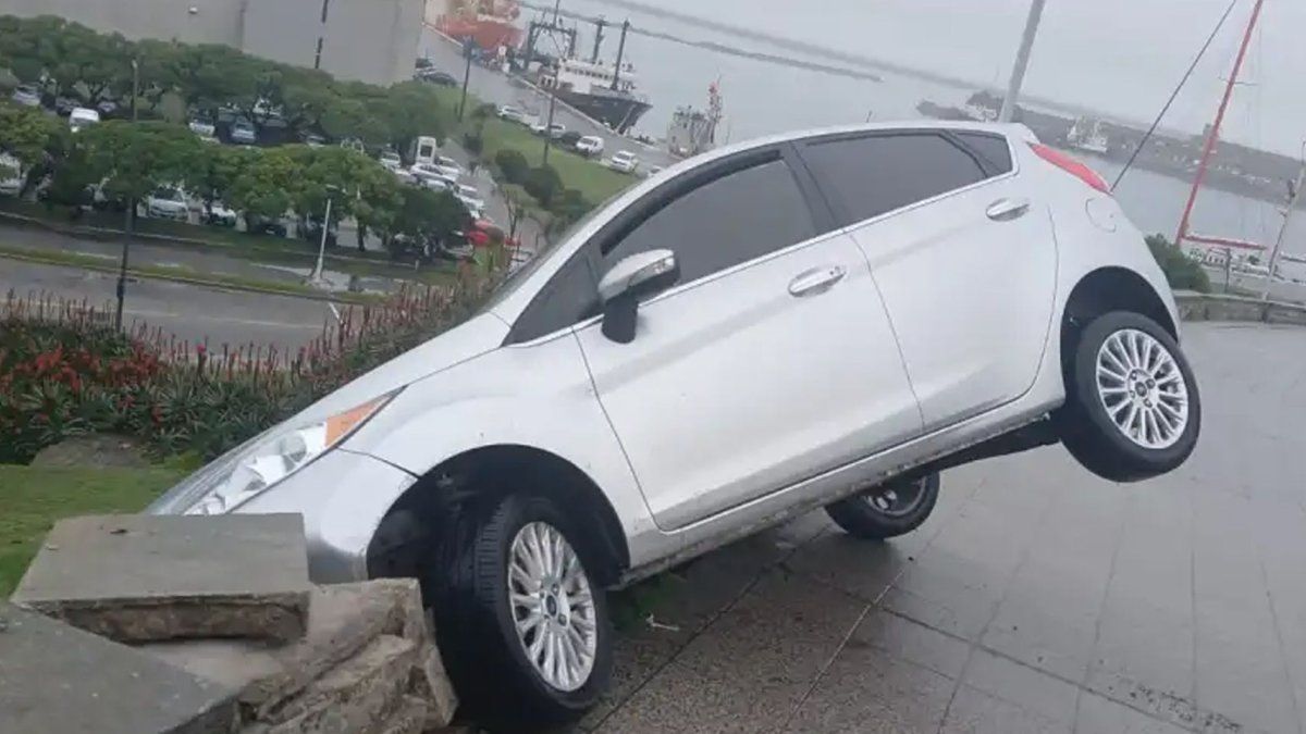 Una mujer resultó ilesa tras el accidente que tuvo con su Ford Fiesta, el cual quedó suspendido en un ángulo peligroso frente a Playa Grande, en Mar del Plata.