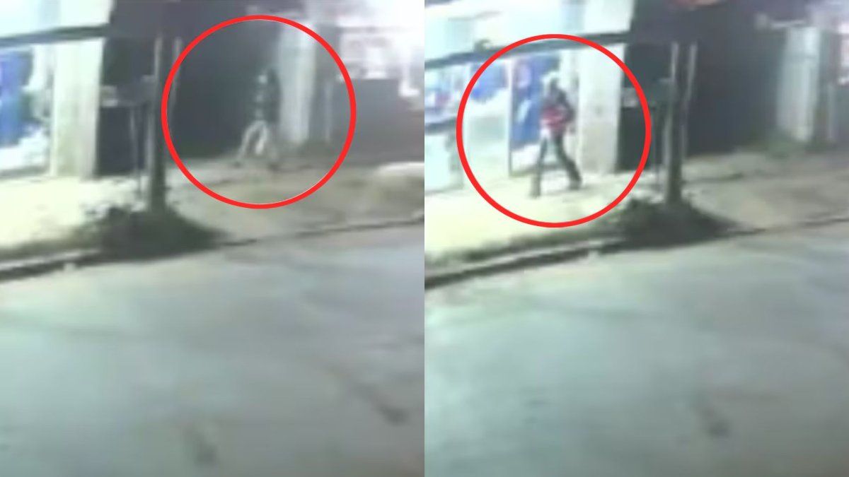 Cámaras de vigilancia de la zona captaron los momentos previos al abuso, donde se ve al presunto agresor caminando y tambaleándose, en aparente estado de ebriedad. Detrás de él se ve a la víctima caminando hacia su casa.