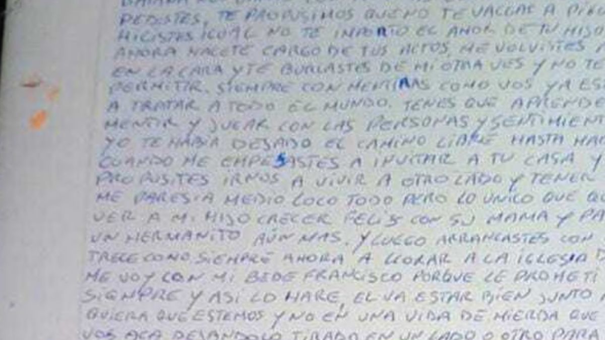 Según hizo trascender el medio TN, la macabra carta que escribió el hombre a mano anunciaba lo que sucedería horas después: “Daiana, nos vamos con Fran así estás tranquila. Te propusimos que no te fueras y lo hiciste igual. No te importó el amor de tu hijo, así que ahora hacete cargo de tus actos“.