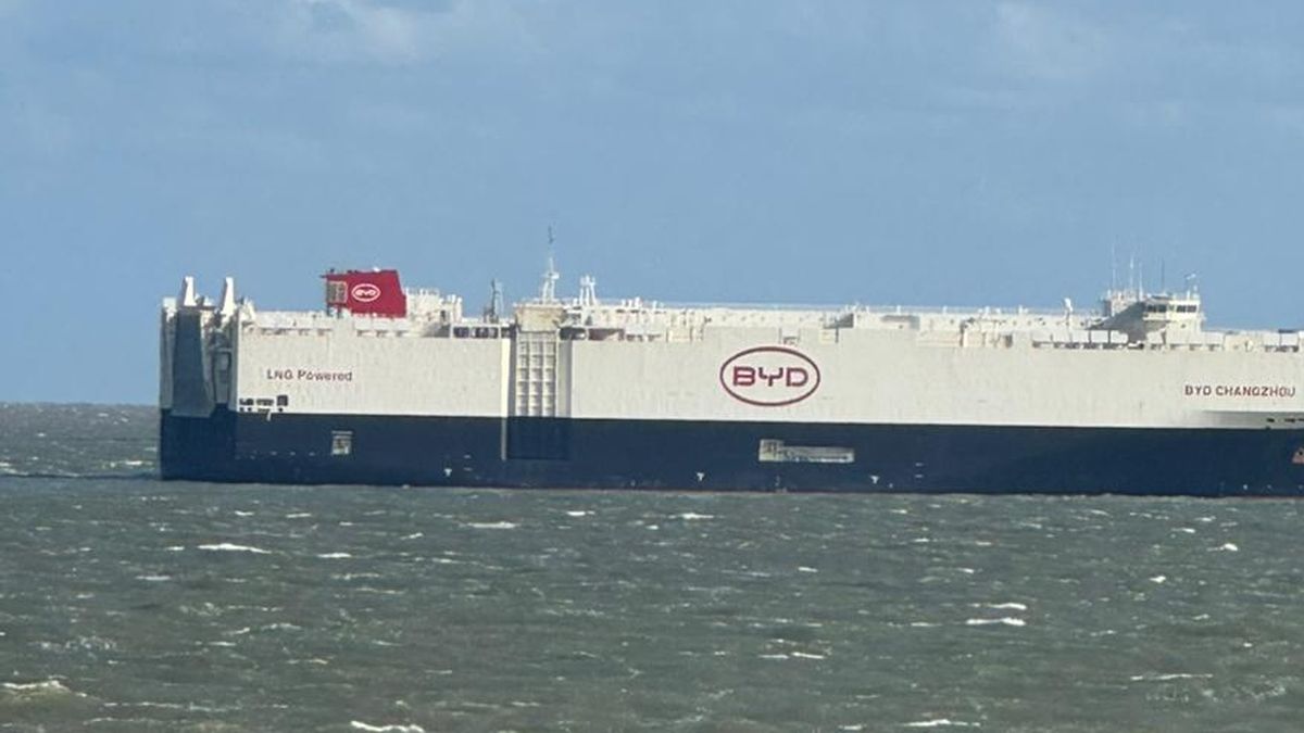 El BYD Changzhou, uno de los ocho barcos propios de la automotriz china entró este domingo al Río de la Plata por el canal de Punta Indio con más de 5.000 autos híbridos y eléctricos. El buque de 200 metros de eslora y 38 de manga está amarrado en el puerto de Zárate desde las siete de la mañana.