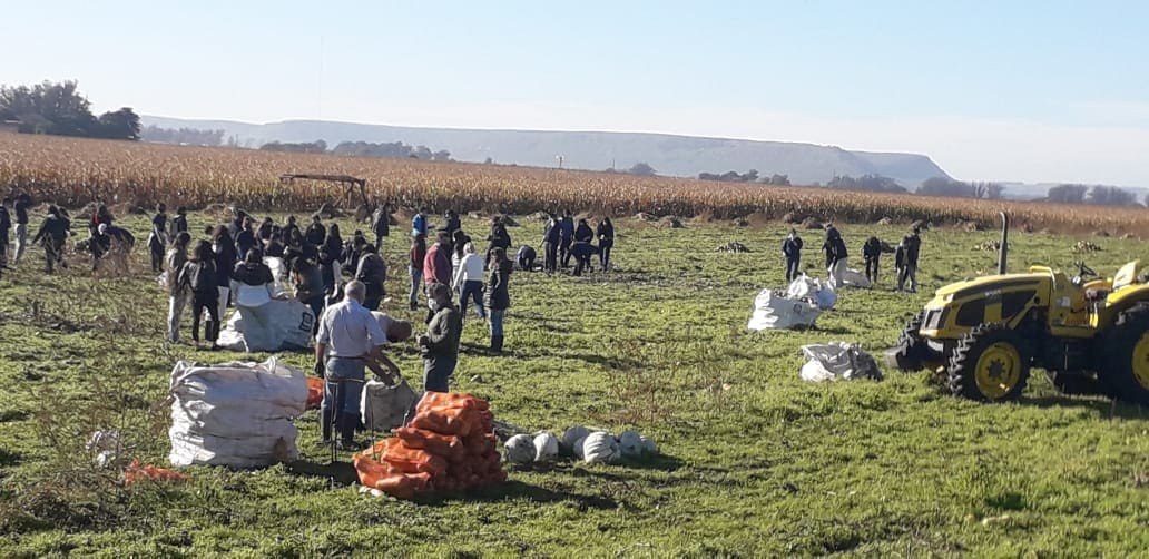 Durante la mañana de hoy personal directivo, docente y alumnos de la Escuela “San José”, junto a integrantes de la Asociación Agricultores Unidos, procedieron a la cosecha de tres hectáreas de zapallos que tendrán un fin benéfico.