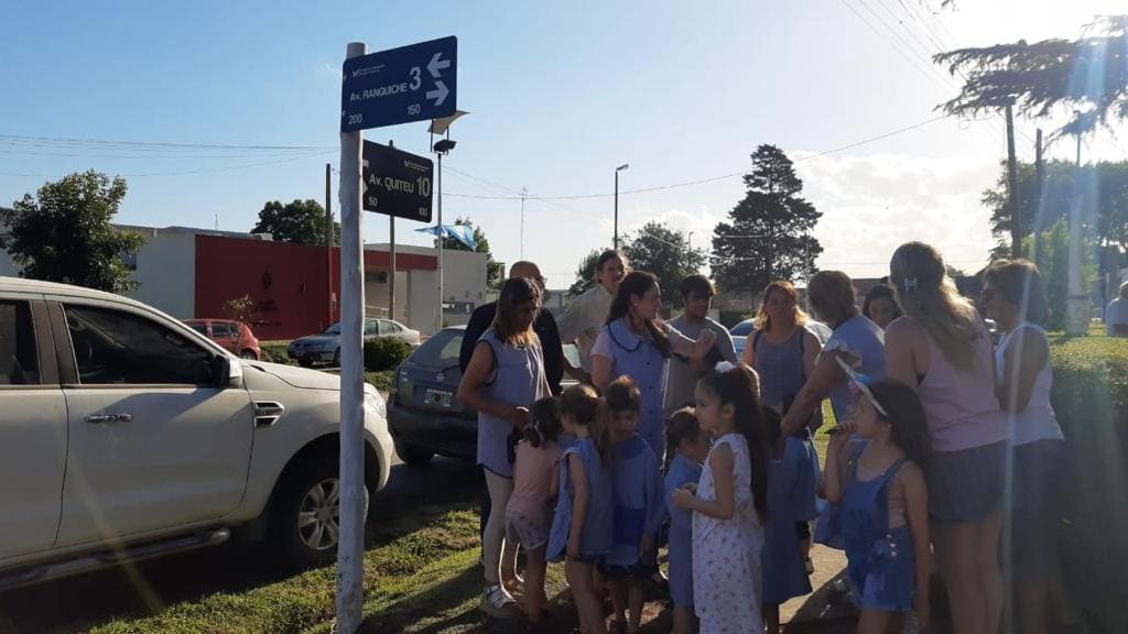 Otro cartel informativo fue presentado en sociedad. Allí se exponen los lugares más significativos de Napaleofú. Figuran los nombres de las calles y con la letra de los infantes aparece su significado.