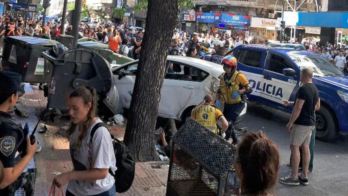 Por las imágenes que se conocieron, se supo que el conductor perdió el control de su vehículo, un Ford Fiesta blanco, y terminó embistiendo a varias personas que circulaban por la vereda.